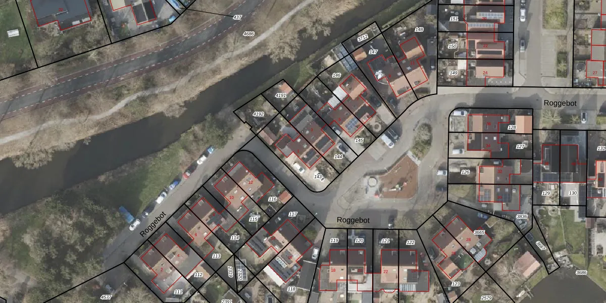 Het perceel waarop Roggebot 1 staat heeft een oppervlakte van 302 m². Dit is een groot perceel. De perceeloppervlakte wordt geregistreerd door het Kadaster. Gedetailleerde informatie over de maten van dit perceel kunt u vinden in het rapport Kadastrale kaart met maatvoering van Roggebot 1.