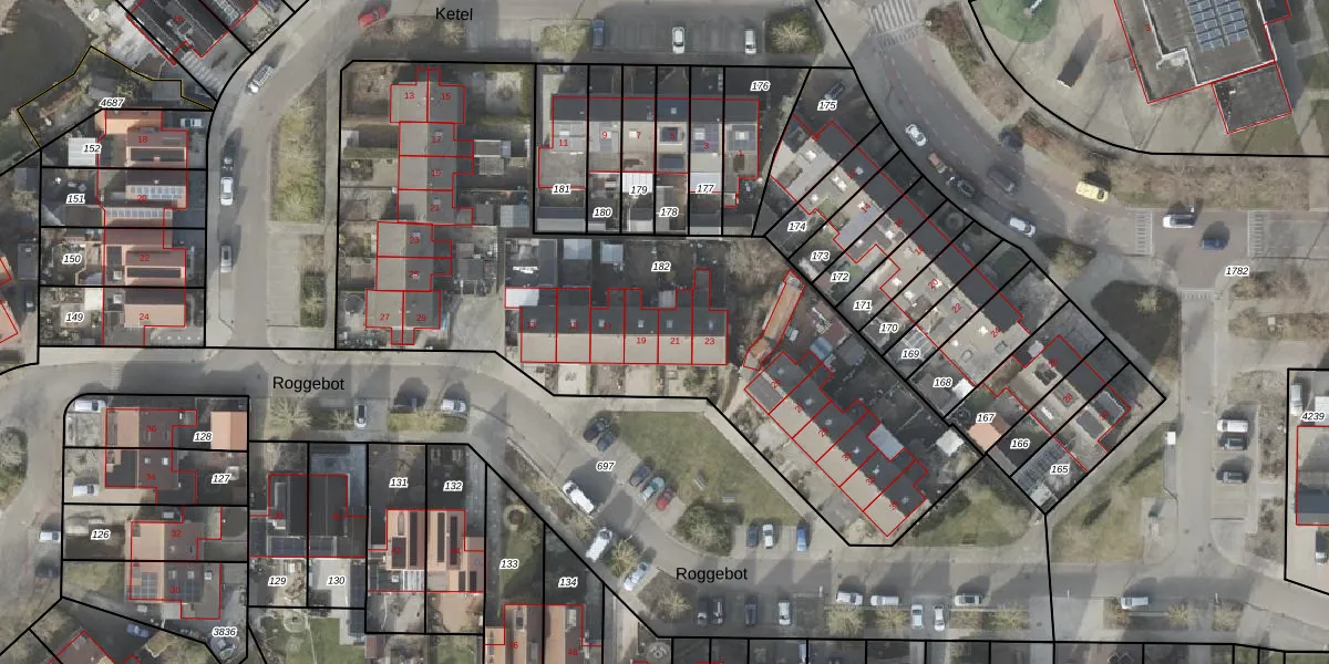Het perceel waarop Roggebot 21 staat heeft een oppervlakte van 2980 m². Dit is een zeer groot perceel. De perceeloppervlakte wordt geregistreerd door het Kadaster. Gedetailleerde informatie over de maten van dit perceel kunt u vinden in het rapport Kadastrale kaart met maatvoering van Roggebot 21.