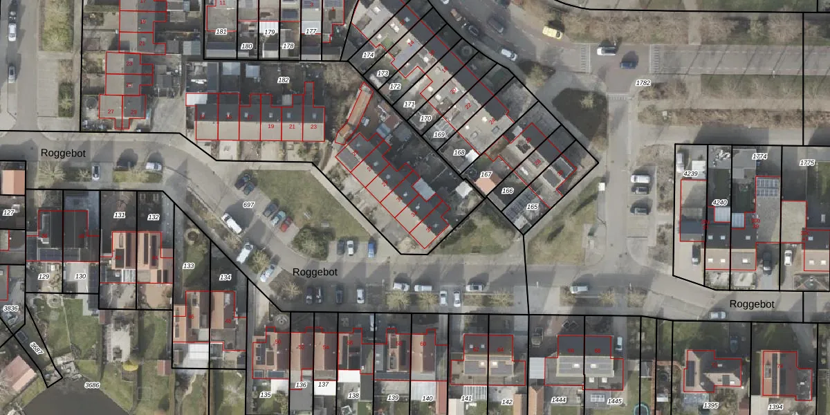 Het perceel waarop Roggebot 33 staat heeft een oppervlakte van 2980 m². Dit is een zeer groot perceel. De perceeloppervlakte wordt geregistreerd door het Kadaster. Gedetailleerde informatie over de maten van dit perceel kunt u vinden in het rapport Kadastrale kaart met maatvoering van Roggebot 33.