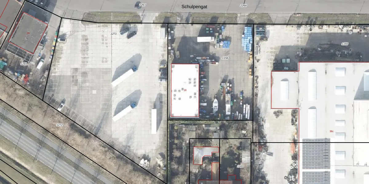 Het perceel waarop Schulpengat 18 staat heeft een oppervlakte van 2433 m². Dit is een zeer groot perceel. De perceeloppervlakte wordt geregistreerd door het Kadaster. Gedetailleerde informatie over de maten van dit perceel kunt u vinden in het rapport Kadastrale kaart met maatvoering van Schulpengat 18.