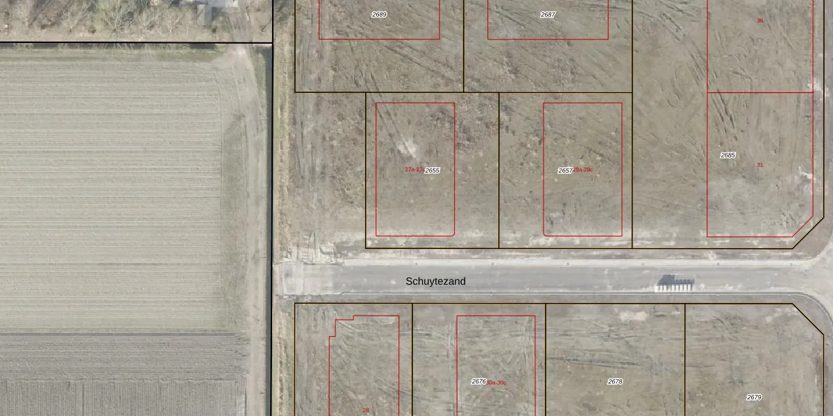 Het perceel waarop Schuytezand 27-a staat heeft een oppervlakte van 1200 m². Dit is een zeer groot perceel. De perceeloppervlakte wordt geregistreerd door het Kadaster. Gedetailleerde informatie over de maten van dit perceel kunt u vinden in het rapport Kadastrale kaart met maatvoering van Schuytezand 27-a.