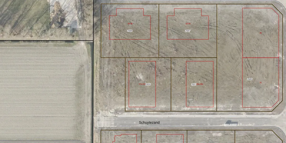 Het perceel waarop Schuytezand 27-c staat heeft een oppervlakte van 1200 m². Dit is een zeer groot perceel. De perceeloppervlakte wordt geregistreerd door het Kadaster. Gedetailleerde informatie over de maten van dit perceel kunt u vinden in het rapport Kadastrale kaart met maatvoering van Schuytezand 27-c.