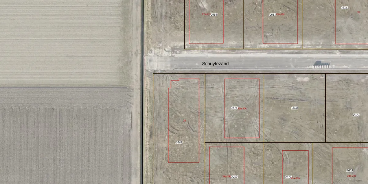 Het perceel waarop Schuytezand 28 staat heeft een oppervlakte van 2118 m². Dit is een zeer groot perceel. De perceeloppervlakte wordt geregistreerd door het Kadaster. Gedetailleerde informatie over de maten van dit perceel kunt u vinden in het rapport Kadastrale kaart met maatvoering van Schuytezand 28.