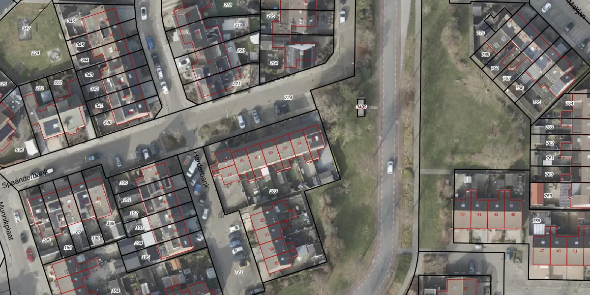 Het perceel waarop Spaanderbank 24 staat heeft een oppervlakte van 1603 m². Dit is een zeer groot perceel. De perceeloppervlakte wordt geregistreerd door het Kadaster. Gedetailleerde informatie over de maten van dit perceel kunt u vinden in het rapport Kadastrale kaart met maatvoering van Spaanderbank 24.