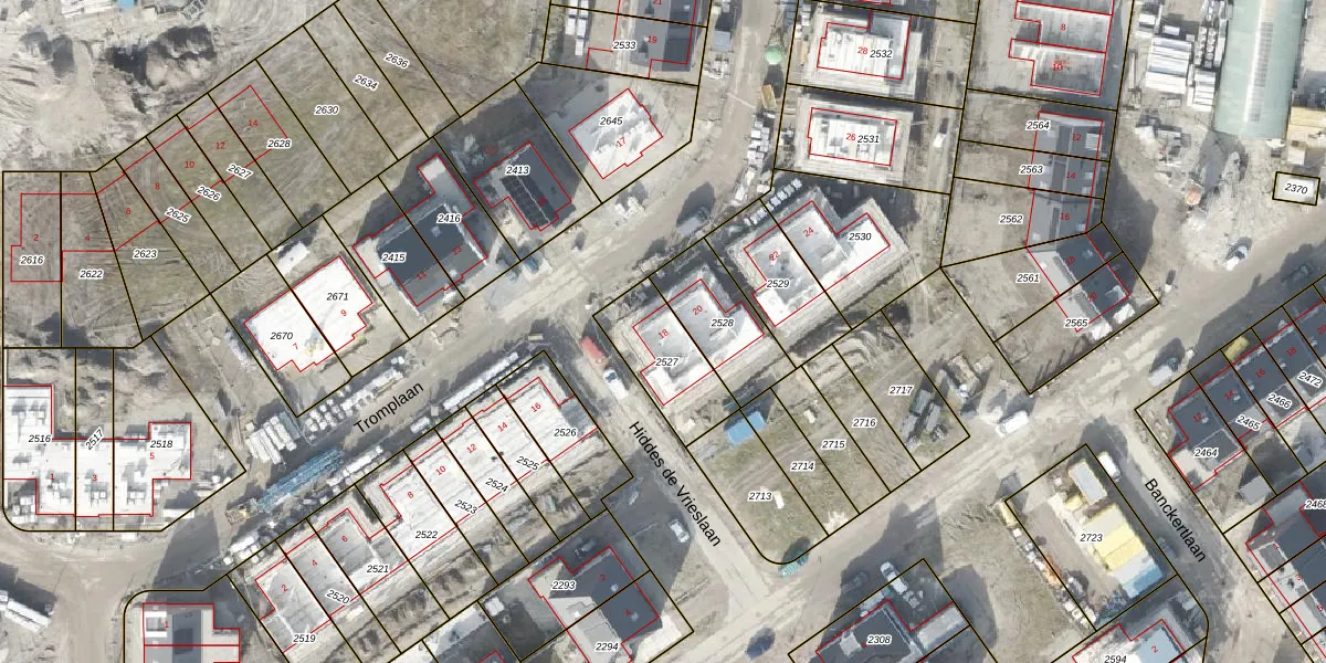 Tromplaan 18 is gelegen op kadastraal perceel URK00D2527. Deze kadastrale aanduiding is uniek en wordt gebruikt door het Kadaster om eigendomsrechten en andere zakelijke rechten vast te leggen. Het perceel maakt onderdeel uit van de kadastrale gemeente Urk.