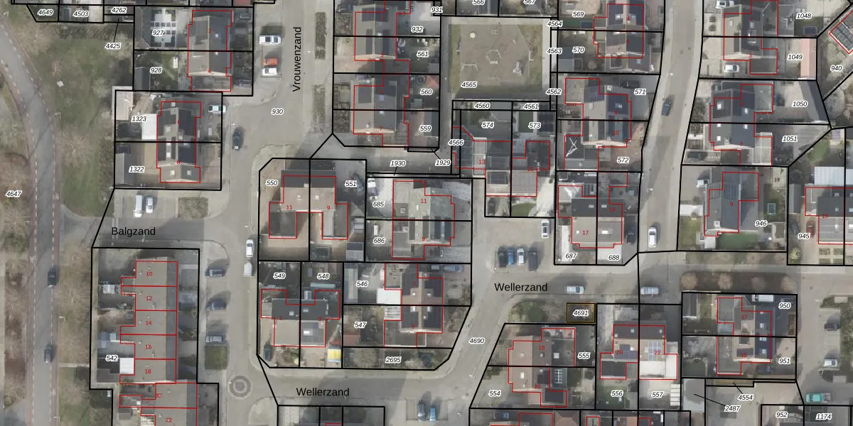 Het perceel waarop Wellerzand 11 staat heeft een oppervlakte van 249 m². Dit is een middelgroot perceel. De perceeloppervlakte wordt geregistreerd door het Kadaster. Gedetailleerde informatie over de maten van dit perceel kunt u vinden in het rapport Kadastrale kaart met maatvoering van Wellerzand 11.