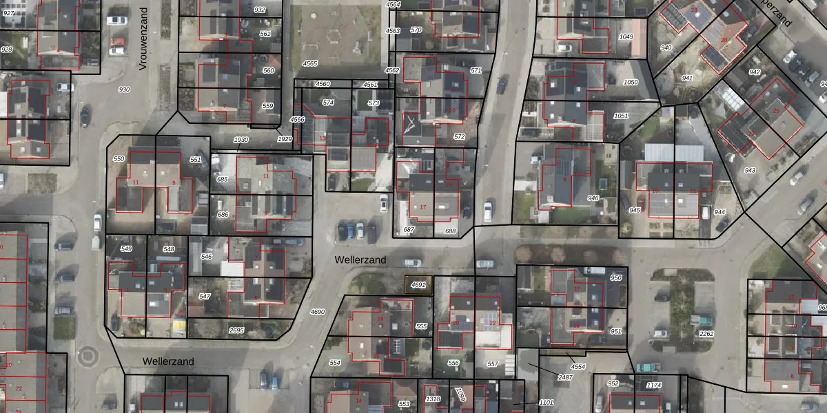 Het perceel waarop Wellerzand 17 staat heeft een oppervlakte van 215 m². Dit is een middelgroot perceel. De perceeloppervlakte wordt geregistreerd door het Kadaster. Gedetailleerde informatie over de maten van dit perceel kunt u vinden in het rapport Kadastrale kaart met maatvoering van Wellerzand 17.
