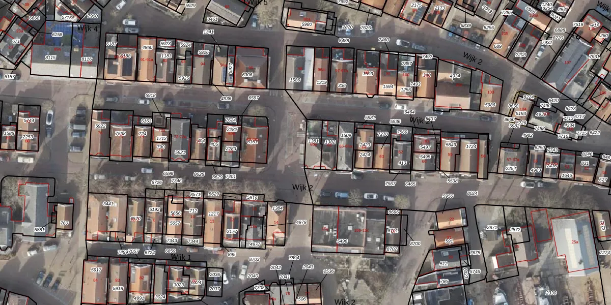 Gebruik de zoekbalk of klik op een perceel voor informatie over de adressen binnen dit perceel.