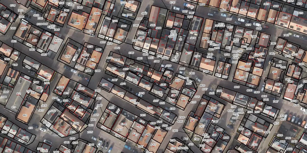 Gebruik de zoekbalk of klik op een perceel voor informatie over de adressen binnen dit perceel.