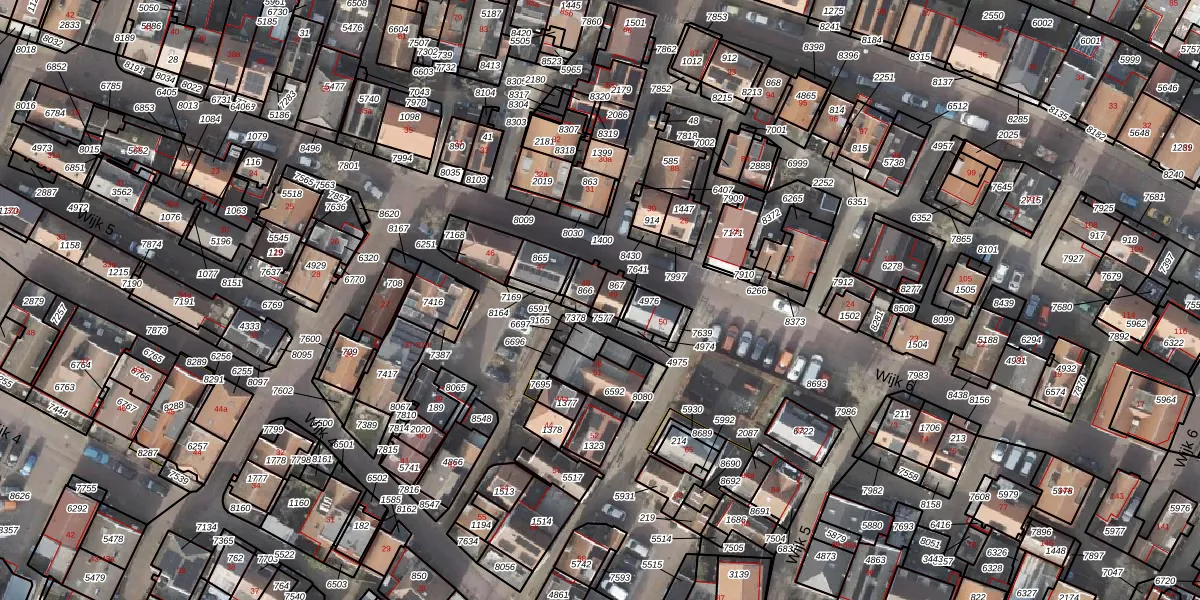 Gebruik de zoekbalk of klik op een perceel voor informatie over de adressen binnen dit perceel.