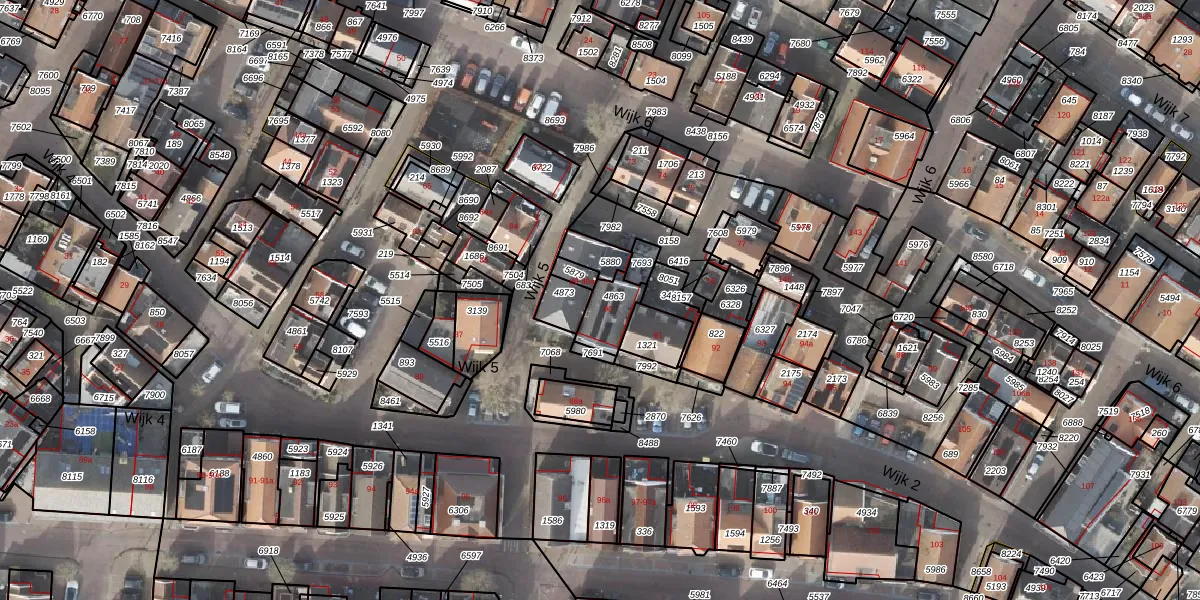 Het perceel waarop Wijk 5 90 staat heeft een oppervlakte van 92 m². Dit is een klein perceel. De perceeloppervlakte wordt geregistreerd door het Kadaster. Gedetailleerde informatie over de maten van dit perceel kunt u vinden in het rapport Kadastrale kaart met maatvoering van Wijk 5 90.
