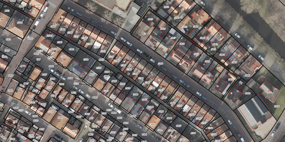 Gebruik de zoekbalk of klik op een perceel voor informatie over de adressen binnen dit perceel.