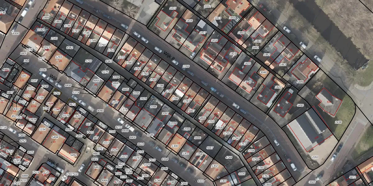 Het perceel waarop Wijk 7 106 staat heeft een oppervlakte van 85 m². Dit is een klein perceel. De perceeloppervlakte wordt geregistreerd door het Kadaster. Gedetailleerde informatie over de maten van dit perceel kunt u vinden in het rapport Kadastrale kaart met maatvoering van Wijk 7 106.