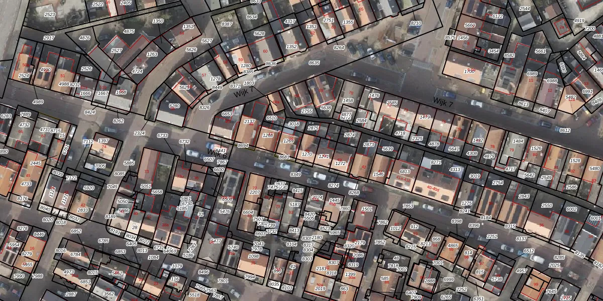 Gebruik de zoekbalk of klik op een perceel voor informatie over de adressen binnen dit perceel.