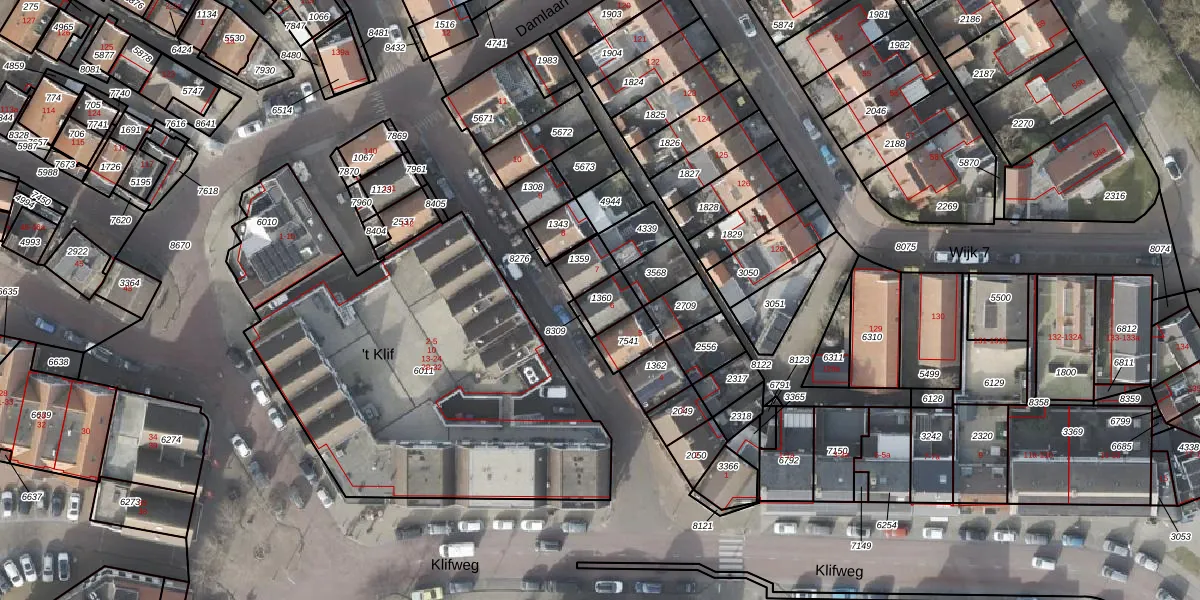 Gebruik de zoekbalk of klik op een perceel voor informatie over de adressen binnen dit perceel.