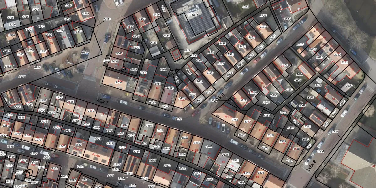 Het perceel waarop Wijk 8 13 staat heeft een oppervlakte van 102 m². Dit is een middelgroot perceel. De perceeloppervlakte wordt geregistreerd door het Kadaster. Gedetailleerde informatie over de maten van dit perceel kunt u vinden in het rapport Kadastrale kaart met maatvoering van Wijk 8 13.