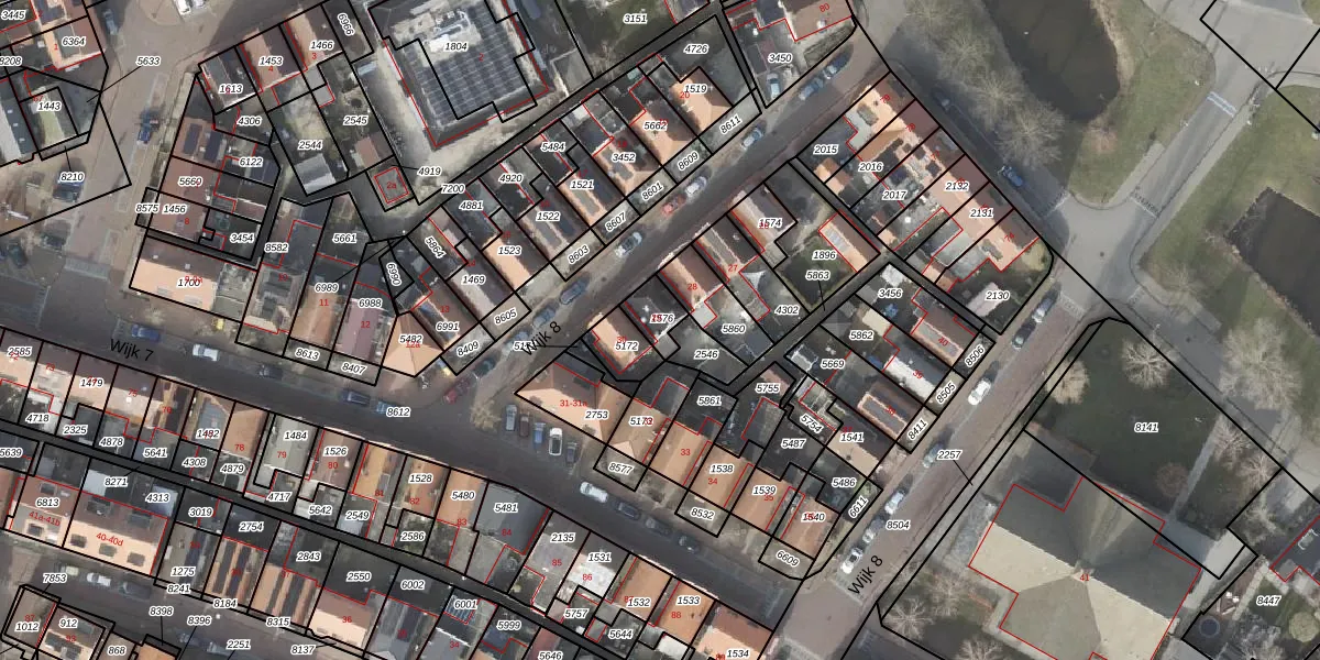 Gebruik de zoekbalk of klik op een perceel voor informatie over de adressen binnen dit perceel.