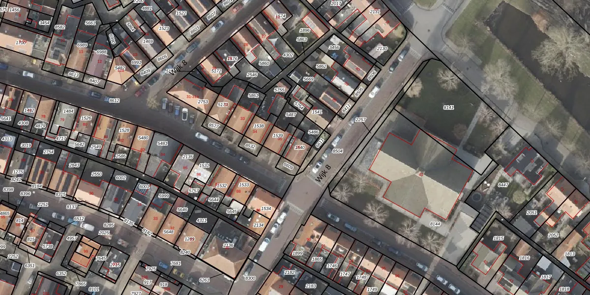 Gebruik de zoekbalk of klik op een perceel voor informatie over de adressen binnen dit perceel.