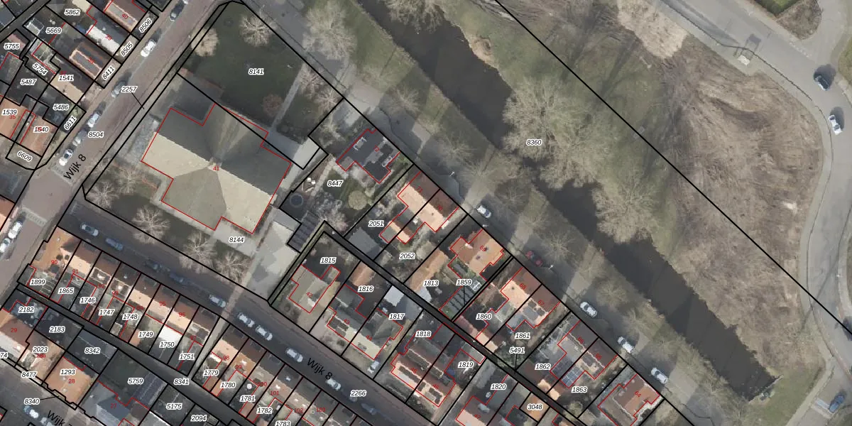 Gebruik de zoekbalk of klik op een perceel voor informatie over de adressen binnen dit perceel.