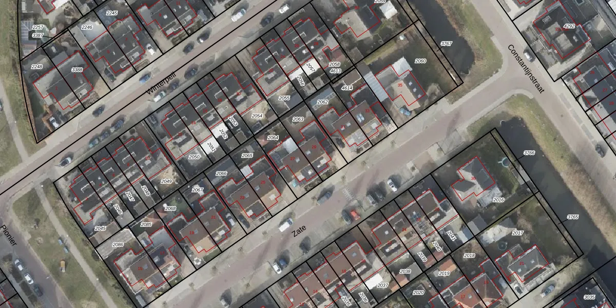 Gebruik de zoekbalk of klik op een perceel voor informatie over de adressen binnen dit perceel.