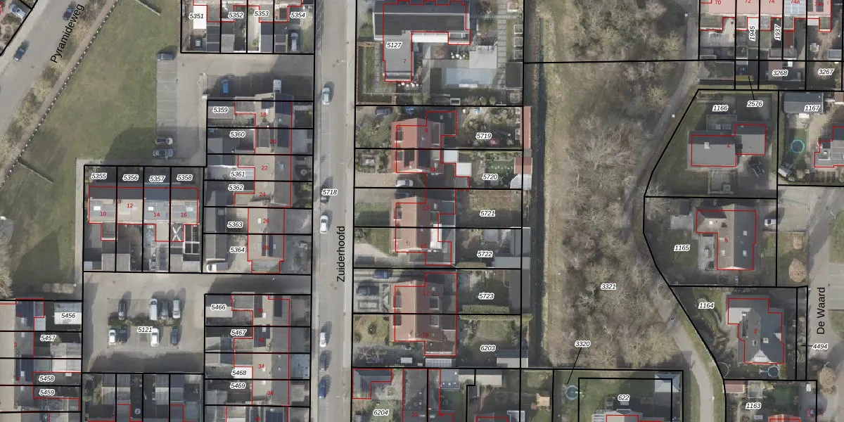 Het perceel waarop Zuiderhoofd 13 staat heeft een oppervlakte van 365 m². Dit is een groot perceel. De perceeloppervlakte wordt geregistreerd door het Kadaster. Gedetailleerde informatie over de maten van dit perceel kunt u vinden in het rapport Kadastrale kaart met maatvoering van Zuiderhoofd 13.
