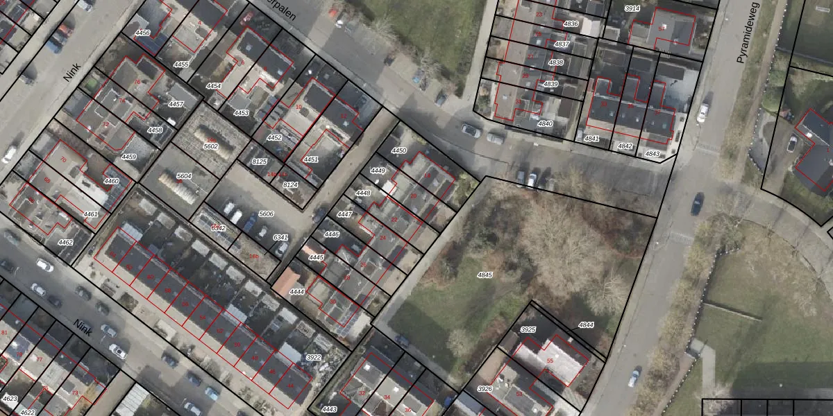 Gebruik de zoekbalk of klik op een perceel voor informatie over de adressen binnen dit perceel.