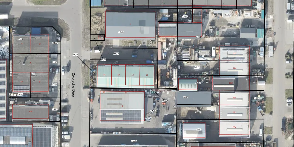 Het perceel waarop Zwolsche Diep 1-d staat heeft een oppervlakte van 875 m². Dit is een groot perceel. De perceeloppervlakte wordt geregistreerd door het Kadaster. Gedetailleerde informatie over de maten van dit perceel kunt u vinden in het rapport Kadastrale kaart met maatvoering van Zwolsche Diep 1-d.