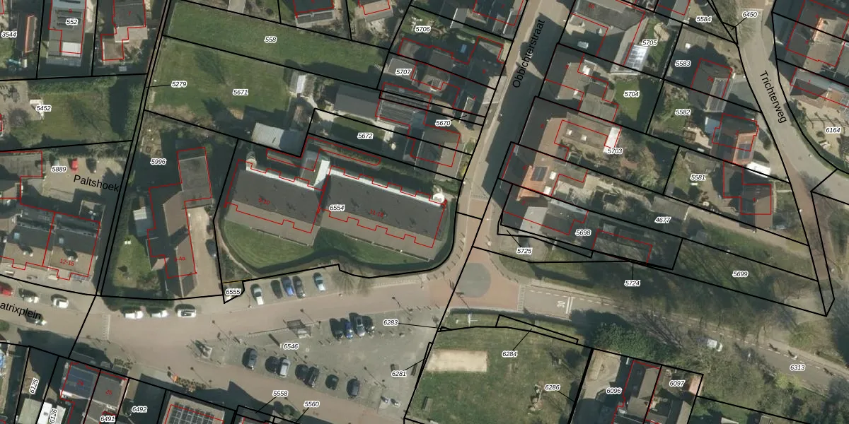 Het perceel waarop Beatrixplein 18 staat heeft een oppervlakte van 1581 m². Dit is een zeer groot perceel. De perceeloppervlakte wordt geregistreerd door het Kadaster. Gedetailleerde informatie over de maten van dit perceel kunt u vinden in het rapport Kadastrale kaart met maatvoering van Beatrixplein 18.