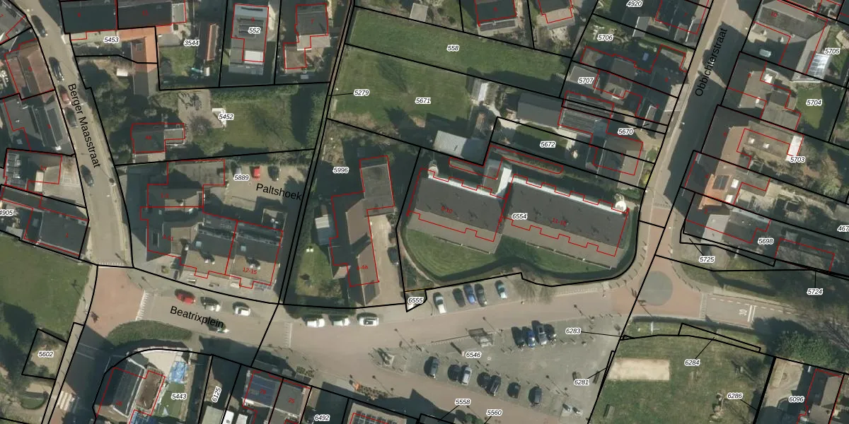Beatrixplein 5 is gelegen op kadastraal perceel UMD00A6554. Deze kadastrale aanduiding is uniek en wordt gebruikt door het Kadaster om eigendomsrechten en andere zakelijke rechten vast te leggen. Het perceel maakt onderdeel uit van de kadastrale gemeente Urmond.