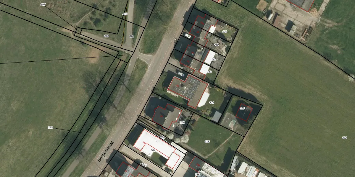 Het perceel waarop Bergerstraat 20 staat heeft een oppervlakte van 775 m². Dit is een groot perceel. De perceeloppervlakte wordt geregistreerd door het Kadaster. Gedetailleerde informatie over de maten van dit perceel kunt u vinden in het rapport Kadastrale kaart met maatvoering van Bergerstraat 20.
