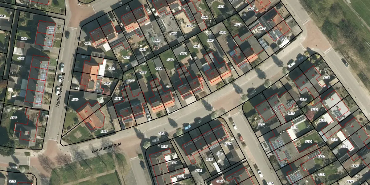 Het perceel waarop Bernhardstraat 21 staat heeft een oppervlakte van 263 m². Dit is een middelgroot perceel. De perceeloppervlakte wordt geregistreerd door het Kadaster. Gedetailleerde informatie over de maten van dit perceel kunt u vinden in het rapport Kadastrale kaart met maatvoering van Bernhardstraat 21.