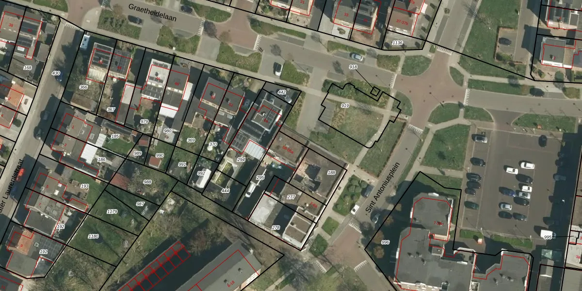 Het perceel waarop Graetheidelaan 56-a staat heeft een oppervlakte van 282 m². Dit is een middelgroot perceel. De perceeloppervlakte wordt geregistreerd door het Kadaster. Gedetailleerde informatie over de maten van dit perceel kunt u vinden in het rapport Kadastrale kaart met maatvoering van Graetheidelaan 56-a.