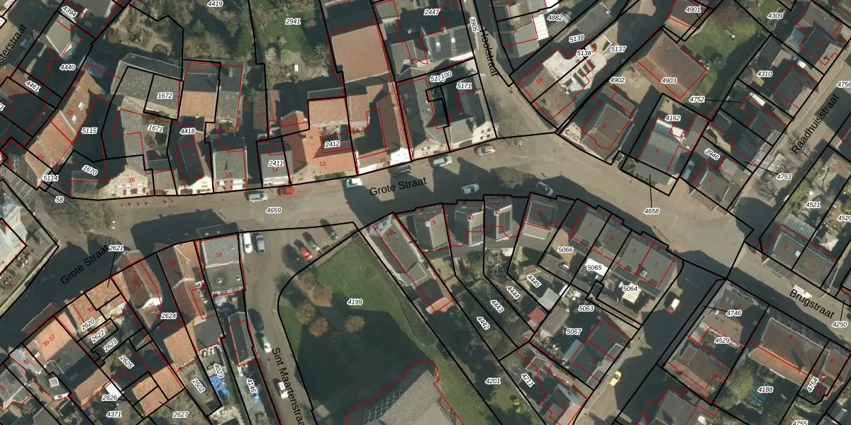 Grote Straat 15 is gelegen op kadastraal perceel UMD00B4442. Deze kadastrale aanduiding is uniek en wordt gebruikt door het Kadaster om eigendomsrechten en andere zakelijke rechten vast te leggen. Het perceel maakt onderdeel uit van de kadastrale gemeente Urmond.