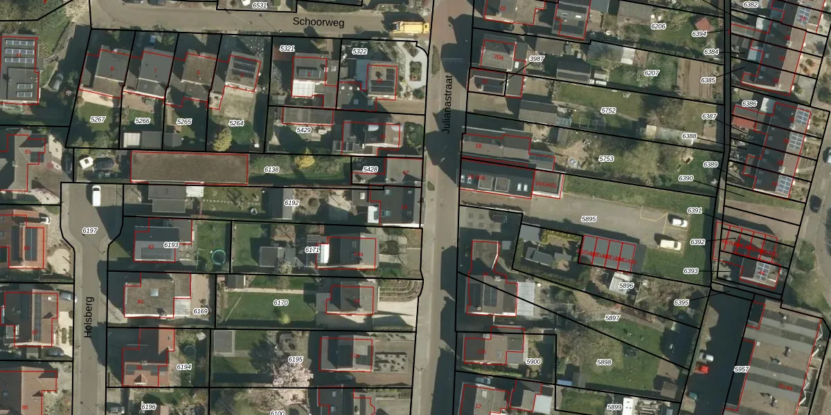 Het perceel waarop Julianastraat 15 staat heeft een oppervlakte van 613 m². Dit is een groot perceel. De perceeloppervlakte wordt geregistreerd door het Kadaster. Gedetailleerde informatie over de maten van dit perceel kunt u vinden in het rapport Kadastrale kaart met maatvoering van Julianastraat 15.