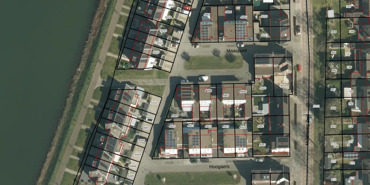 Het perceel waarop Maaspont 11 staat heeft een oppervlakte van 305 m². Dit is een groot perceel. De perceeloppervlakte wordt geregistreerd door het Kadaster. Gedetailleerde informatie over de maten van dit perceel kunt u vinden in het rapport Kadastrale kaart met maatvoering van Maaspont 11.
