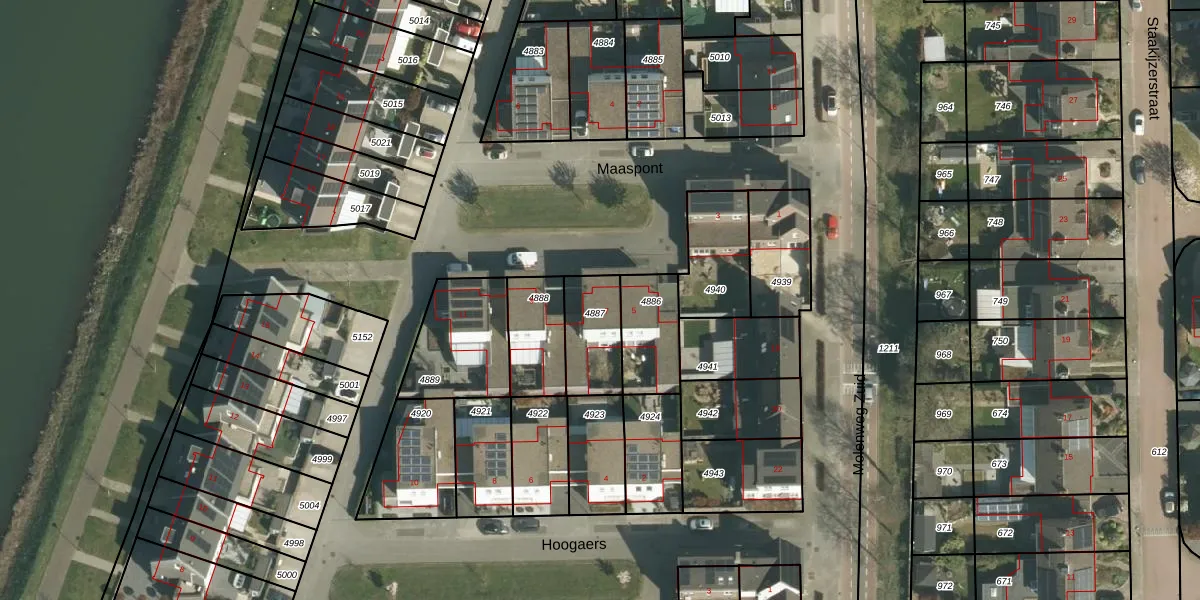 Het perceel waarop Maaspont 7 staat heeft een oppervlakte van 188 m². Dit is een middelgroot perceel. De perceeloppervlakte wordt geregistreerd door het Kadaster. Gedetailleerde informatie over de maten van dit perceel kunt u vinden in het rapport Kadastrale kaart met maatvoering van Maaspont 7.