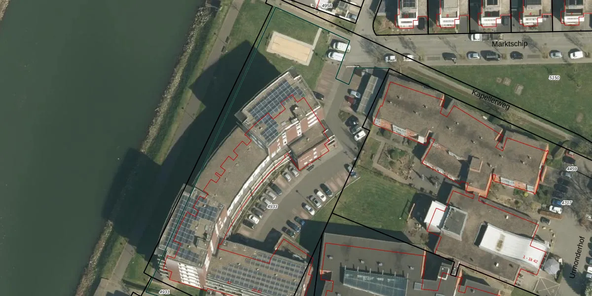 Het perceel waarop Marktschip 21 staat heeft een oppervlakte van 4319 m². Dit is een zeer groot perceel. De perceeloppervlakte wordt geregistreerd door het Kadaster. Gedetailleerde informatie over de maten van dit perceel kunt u vinden in het rapport Kadastrale kaart met maatvoering van Marktschip 21.