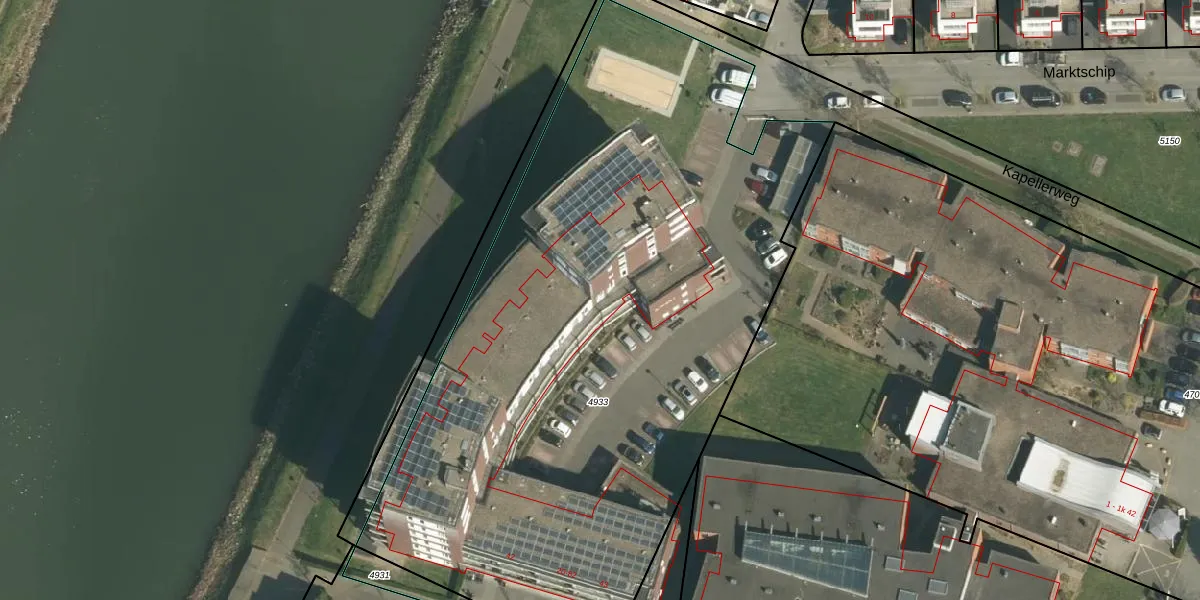 Het perceel waarop Marktschip 32 staat heeft een oppervlakte van 4319 m². Dit is een zeer groot perceel. De perceeloppervlakte wordt geregistreerd door het Kadaster. Gedetailleerde informatie over de maten van dit perceel kunt u vinden in het rapport Kadastrale kaart met maatvoering van Marktschip 32.