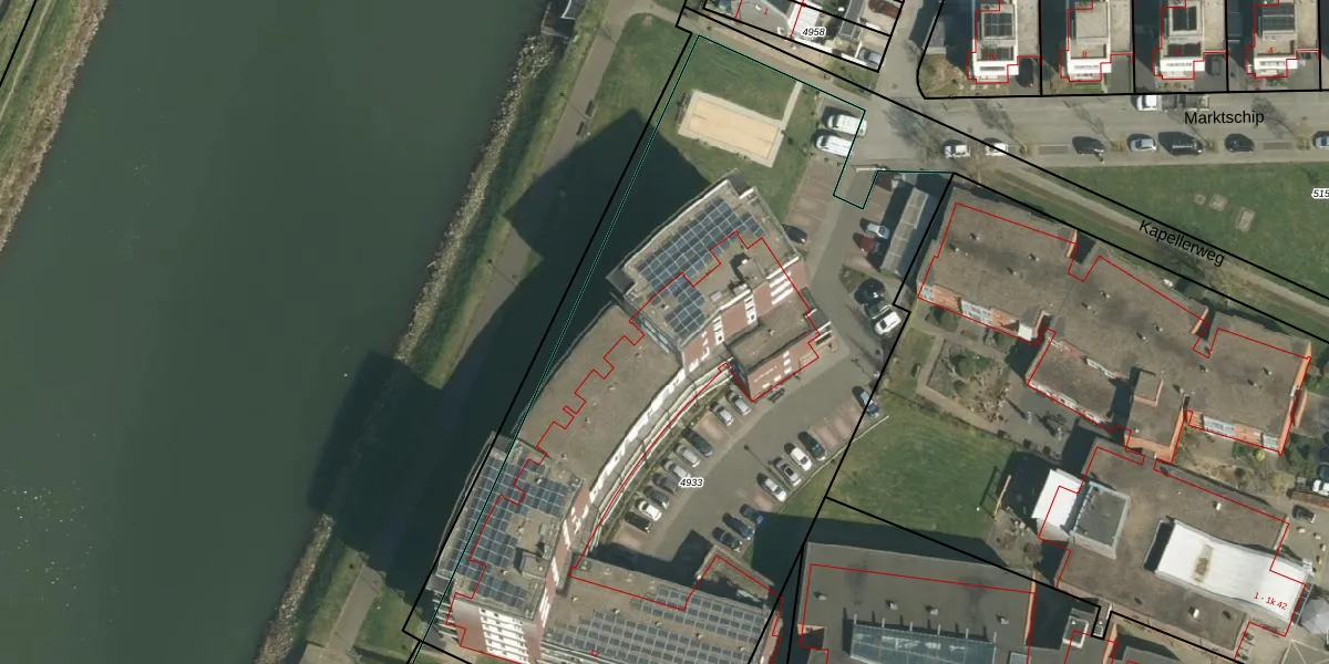 Het perceel waarop Marktschip 63 staat heeft een oppervlakte van 4319 m². Dit is een zeer groot perceel. De perceeloppervlakte wordt geregistreerd door het Kadaster. Gedetailleerde informatie over de maten van dit perceel kunt u vinden in het rapport Kadastrale kaart met maatvoering van Marktschip 63.