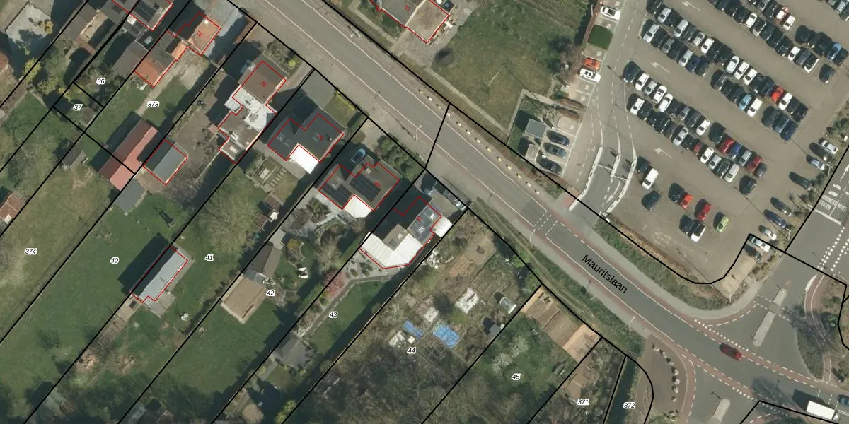 Het perceel waarop Mauritslaan 82 staat heeft een oppervlakte van 1000 m². Dit is een zeer groot perceel. De perceeloppervlakte wordt geregistreerd door het Kadaster. Gedetailleerde informatie over de maten van dit perceel kunt u vinden in het rapport Kadastrale kaart met maatvoering van Mauritslaan 82.