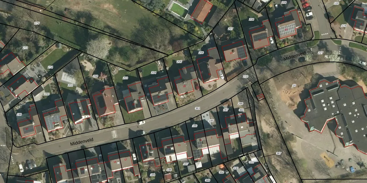 Het perceel waarop Middenveld 18 staat heeft een oppervlakte van 428 m². Dit is een groot perceel. De perceeloppervlakte wordt geregistreerd door het Kadaster. Gedetailleerde informatie over de maten van dit perceel kunt u vinden in het rapport Kadastrale kaart met maatvoering van Middenveld 18.