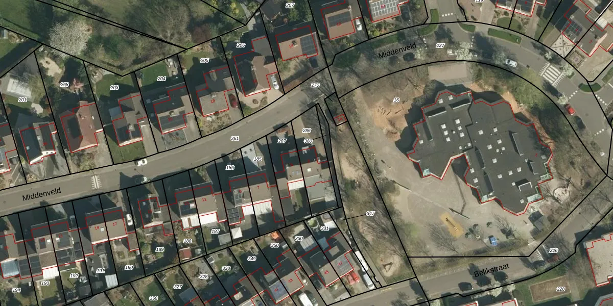Het perceel waarop Middenveld 3 staat heeft een oppervlakte van 300 m². Dit is een groot perceel. De perceeloppervlakte wordt geregistreerd door het Kadaster. Gedetailleerde informatie over de maten van dit perceel kunt u vinden in het rapport Kadastrale kaart met maatvoering van Middenveld 3.