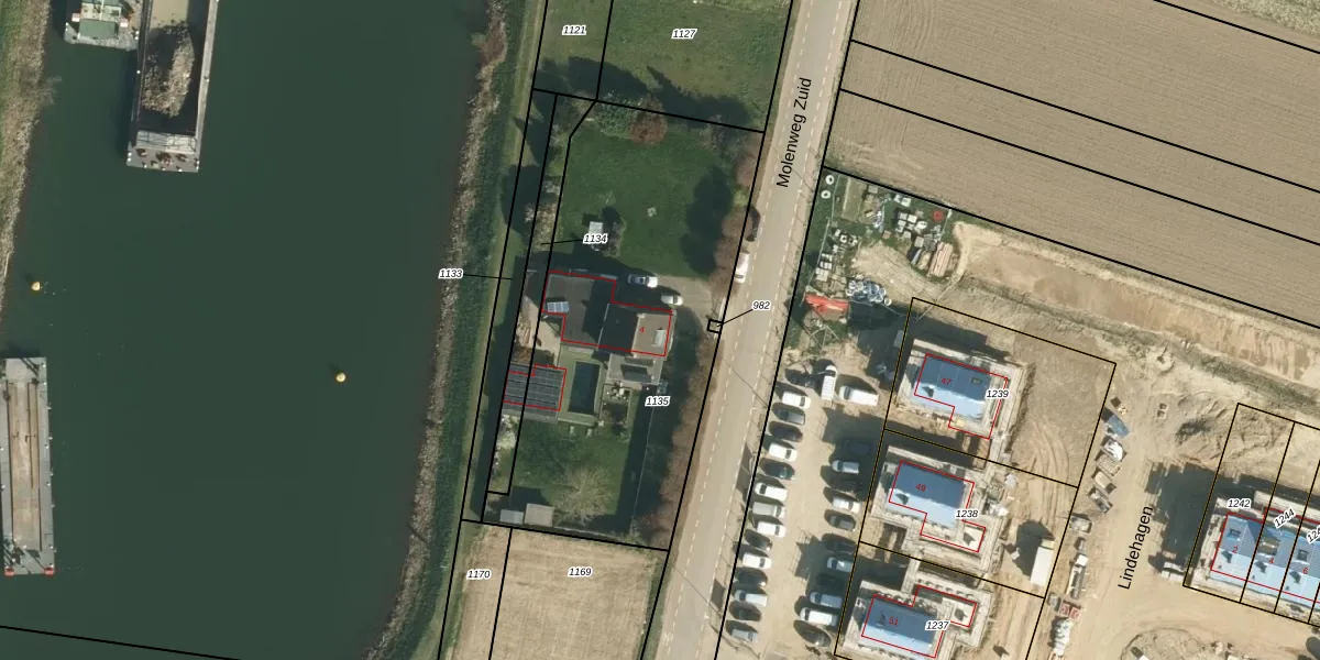 Het perceel waarop Molenweg Zuid 4 staat heeft een oppervlakte van 1738 m². Dit is een zeer groot perceel. De perceeloppervlakte wordt geregistreerd door het Kadaster. Gedetailleerde informatie over de maten van dit perceel kunt u vinden in het rapport Kadastrale kaart met maatvoering van Molenweg Zuid 4.