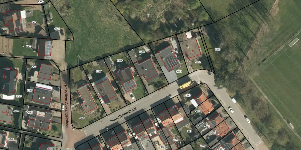 Nederheidestraat 21 is gelegen op kadastraal perceel UMD00A5250. Deze kadastrale aanduiding is uniek en wordt gebruikt door het Kadaster om eigendomsrechten en andere zakelijke rechten vast te leggen. Het perceel maakt onderdeel uit van de kadastrale gemeente Urmond.