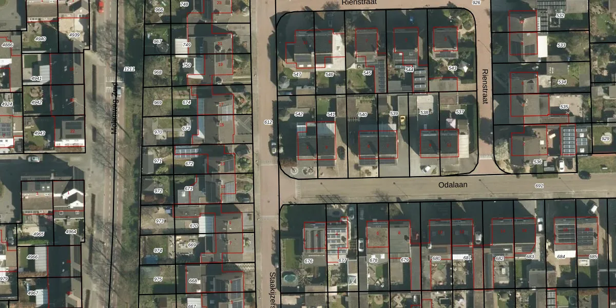 Gebruik de zoekbalk of klik op een perceel voor informatie over de adressen binnen dit perceel.