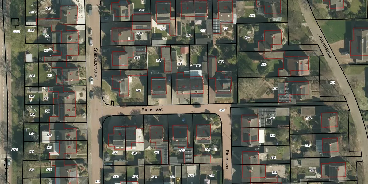 Het perceel waarop Rienstraat 16 staat heeft een oppervlakte van 327 m². Dit is een groot perceel. De perceeloppervlakte wordt geregistreerd door het Kadaster. Gedetailleerde informatie over de maten van dit perceel kunt u vinden in het rapport Kadastrale kaart met maatvoering van Rienstraat 16.