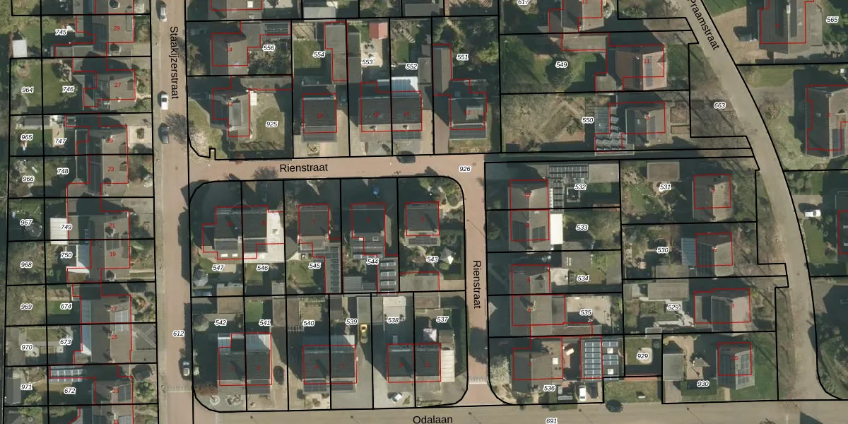 Het perceel waarop Rienstraat 3 staat heeft een oppervlakte van 419 m². Dit is een groot perceel. De perceeloppervlakte wordt geregistreerd door het Kadaster. Gedetailleerde informatie over de maten van dit perceel kunt u vinden in het rapport Kadastrale kaart met maatvoering van Rienstraat 3.