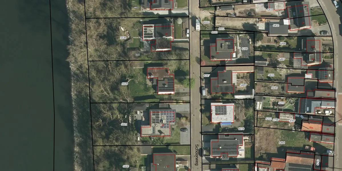 Schoorweg 21 is gelegen op kadastraal perceel UMD00A5539. Deze kadastrale aanduiding is uniek en wordt gebruikt door het Kadaster om eigendomsrechten en andere zakelijke rechten vast te leggen. Het perceel maakt onderdeel uit van de kadastrale gemeente Urmond.