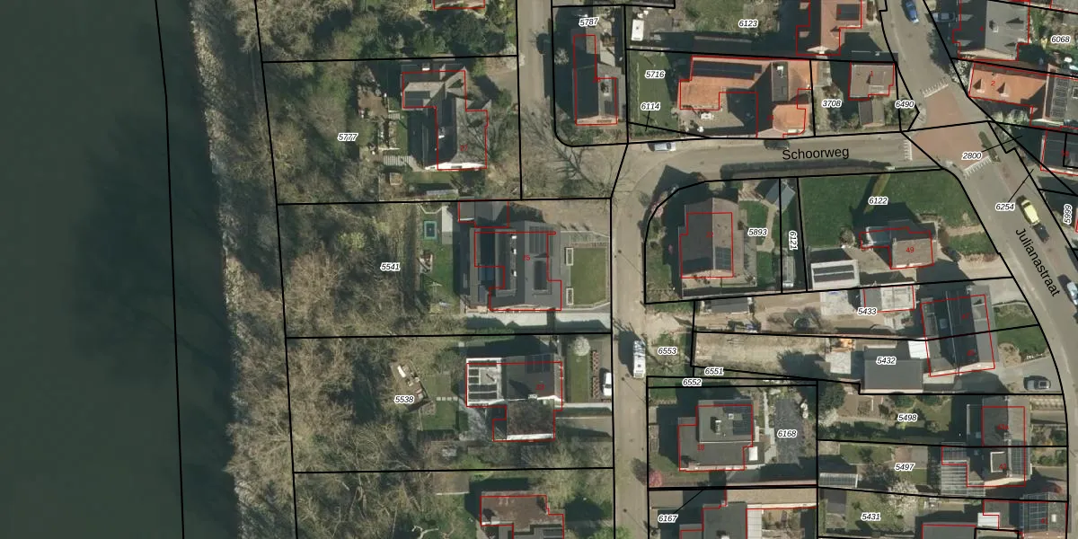 Schoorweg 25 is gelegen op kadastraal perceel UMD00A5541. Deze kadastrale aanduiding is uniek en wordt gebruikt door het Kadaster om eigendomsrechten en andere zakelijke rechten vast te leggen. Het perceel maakt onderdeel uit van de kadastrale gemeente Urmond.