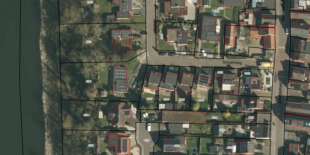 Schoorweg 9 is gelegen op kadastraal perceel UMD00A5267. Deze kadastrale aanduiding is uniek en wordt gebruikt door het Kadaster om eigendomsrechten en andere zakelijke rechten vast te leggen. Het perceel maakt onderdeel uit van de kadastrale gemeente Urmond.